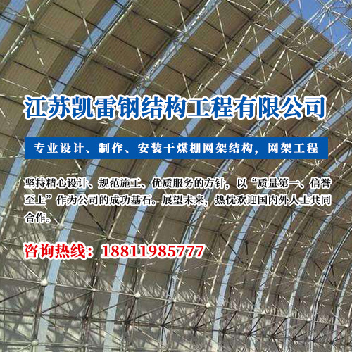 江蘇凱雷鋼結(jié)構(gòu)工程有限公司是專業(yè)設(shè)計、制作、安裝干煤棚網(wǎng)架結(jié)構(gòu),煤場封閉料倉網(wǎng)架,及其配件的企業(yè)... 查看詳情